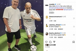 体育资讯7月7日讯 巴西名宿济科造访了皇马位于迪拜的主题公园,并与罗纳尔多的蜡像合影。济科还向大罗分享了这一时刻。大罗随即在社媒上晒出了这张照片。
