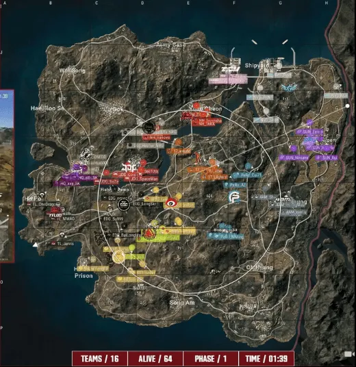 决赛圈,PeRo选择开车顶到JRG近点,PeRo和17夹击淘汰JRG,NH踩到高点,将PeRo最后一人淘汰。最终决赛圈NH与17四打四,双方利用道具和枪线拉扯互换两人,xwudd出枪打倒一人后,两人压上淘汰最后一人成功吃鸡。